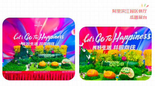 雙十一是全民購物逛歡節(jié)。為營造熱鬧喜慶的節(jié)日氛圍,許多客戶盛裝而飾,特別是杭州阿里巴巴濱江園區(qū),在各色燈光下呈現(xiàn)出一片夢幻色彩。各餐廳同樣用心布置,盛裝亮相。一個個雙十一主題活動展臺色彩繽紛,吸人眼球;各種精美的瓜雕惟妙惟肖,令人嘆為觀止。餐廳里各色氣球點(diǎn)綴,各種雙十一元素穿插其中,營造了濃郁的節(jié)日氛圍。杭州阿里巴巴餐廳的同事還專門穿上印有“旗開得勝”字樣的紅色T恤,寓意著產(chǎn)品的紅火大賣。