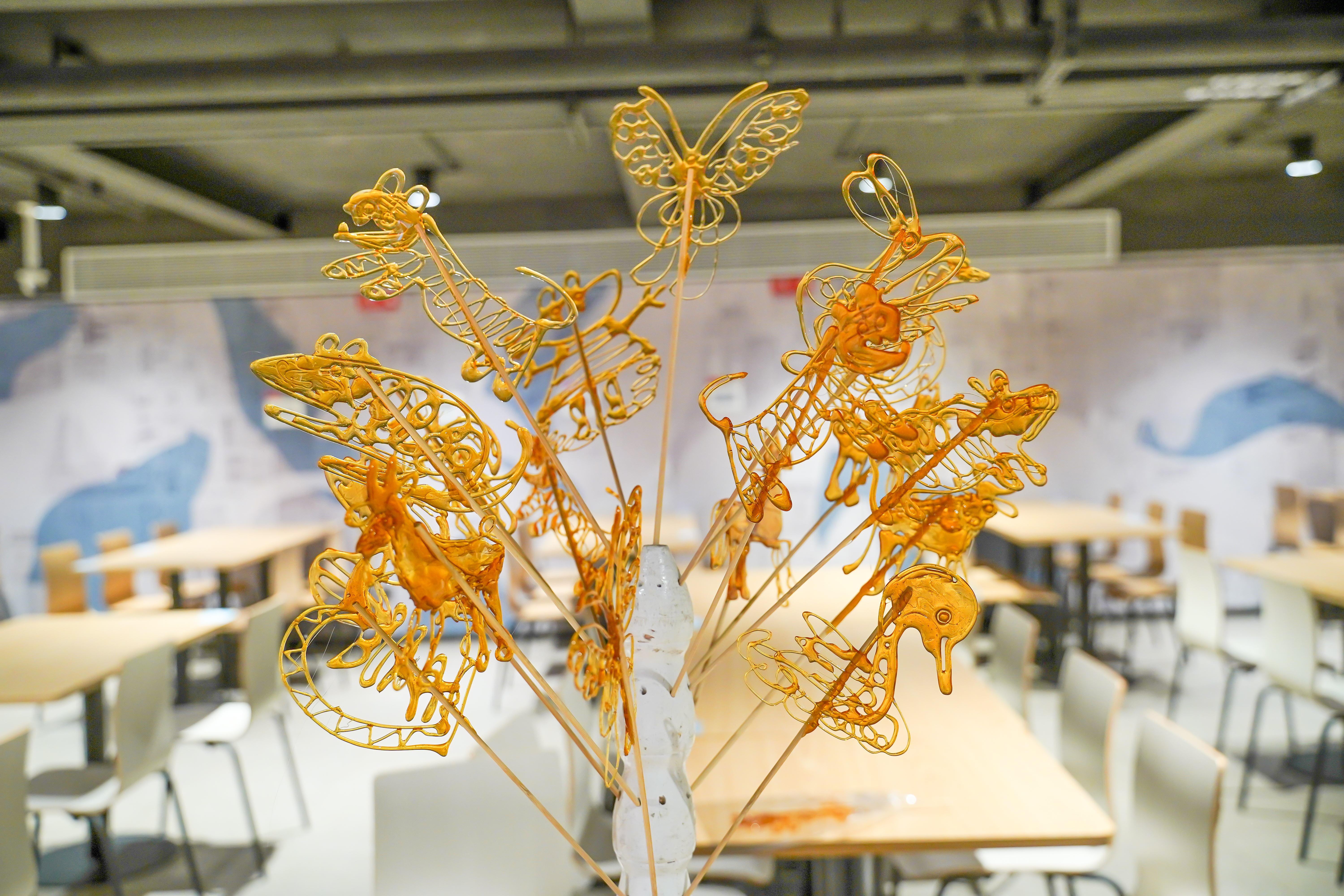 活動當天,各餐廳還安排了現(xiàn)場制作糖葫蘆、棉花糖,分蛋糕等活動,讓顧客們快樂其中,流連忘返!眾多活動中,糖畫表演最受顧客追捧,在糖畫師傅的巧手下,一個個精美的糖畫栩栩如生,引得顧客們爭相領取,愛不釋手!
