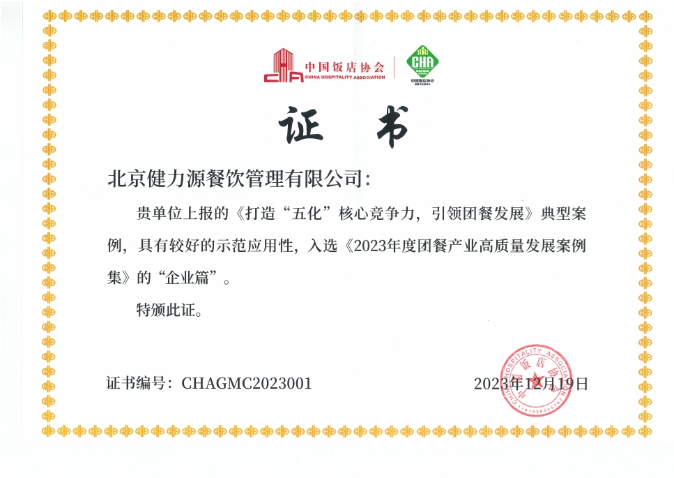 大會還公布了“2023年度團(tuán)餐領(lǐng)跑者TOP100”企業(yè)名單和《2023年度團(tuán)餐高質(zhì)量發(fā)展案例集》,健力源榮登“TOP100”榜單,集團(tuán)公司申報的“打造“五化”核心競爭力,引領(lǐng)團(tuán)餐發(fā)展”典型案例,成功入選《2023年度團(tuán)餐產(chǎn)業(yè)高質(zhì)量發(fā)展案例》企業(yè)篇。集團(tuán)旗下北京谷香源供應(yīng)鏈管理有限公司申報的“協(xié)同共創(chuàng),賦能團(tuán)餐”典型案例,則成功入選《2023年度團(tuán)餐產(chǎn)業(yè)高質(zhì)量發(fā)展案例集》“供應(yīng)鏈篇”。