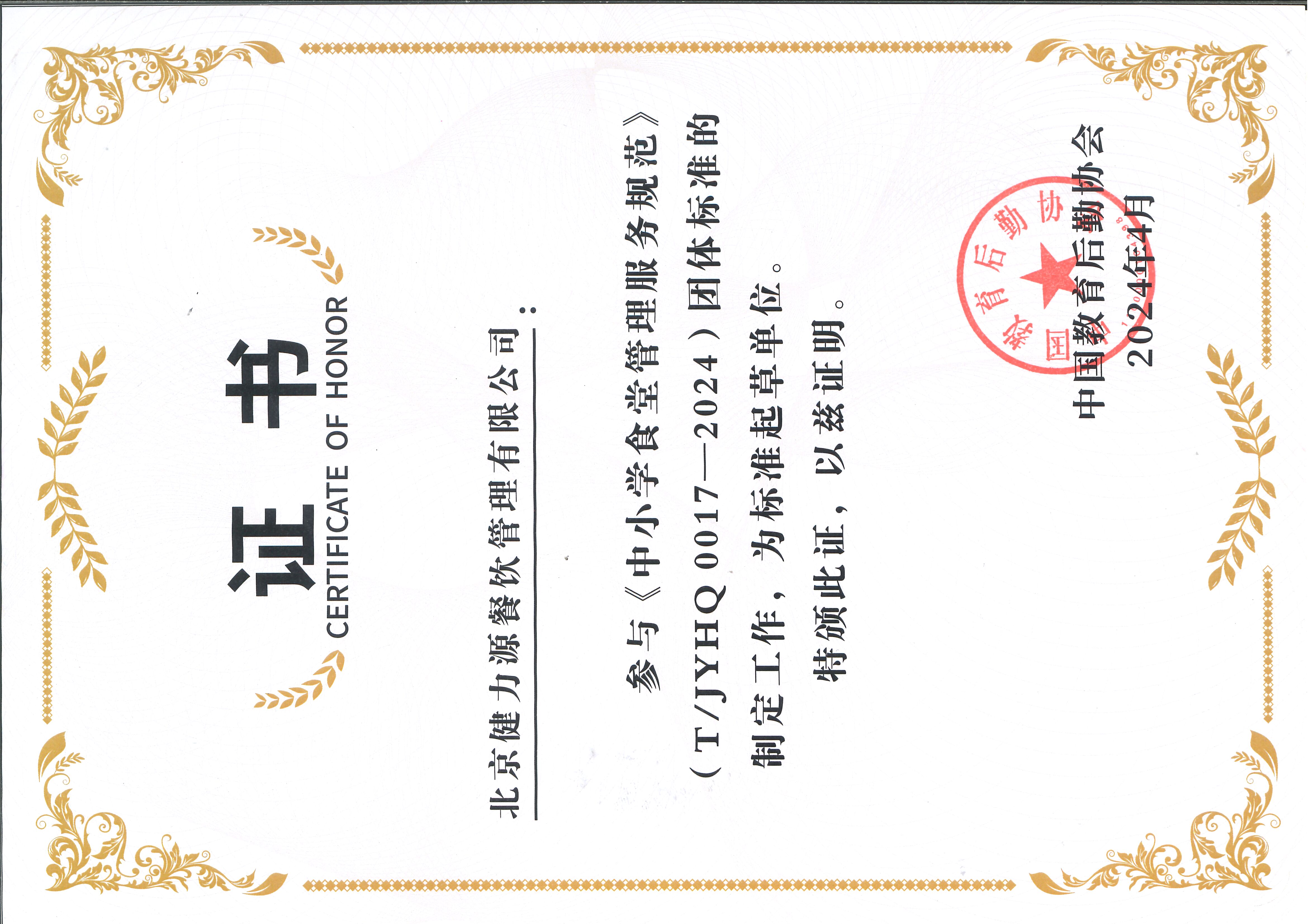 5月1日,由北京健力源餐飲管理有限公司參與起草的《中小學(xué)食堂管理服務(wù)規(guī)范》(T/JYHQ 0017-2024)團(tuán)體標(biāo)準(zhǔn)正式實(shí)施。