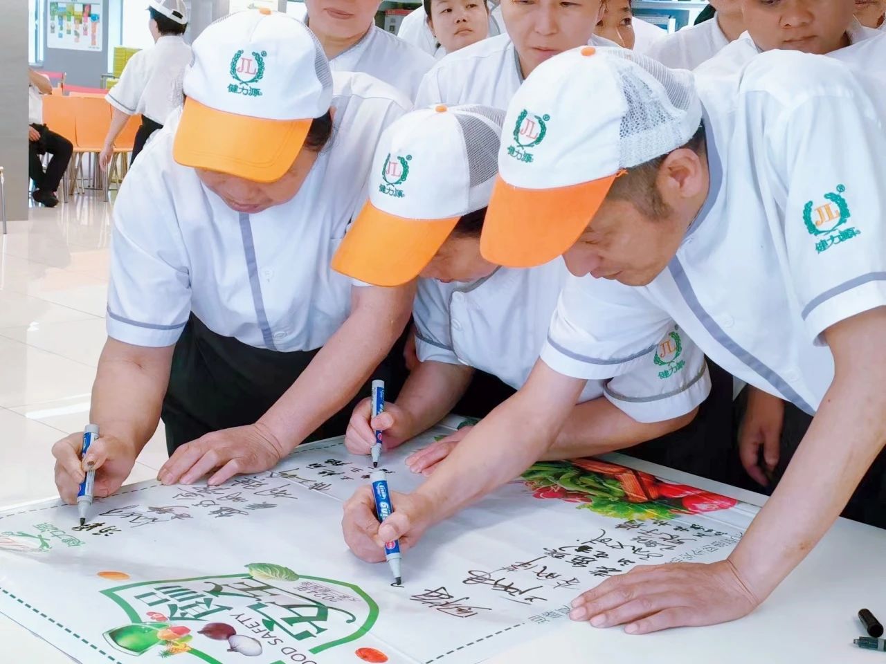 在這個(gè)夏天,健力源人再次誓師——將用行動(dòng)、用汗水克服一切困難,堅(jiān)持把安全、反浪費(fèi)工作作為首要任務(wù)常抓不懈,打造最安全最健康無浪費(fèi)的餐廳!打造團(tuán)餐行業(yè)最高端的餐飲服務(wù)品牌!為客戶提供安全、營(yíng)養(yǎng)、健康的食品和優(yōu)質(zhì)的服務(wù)!