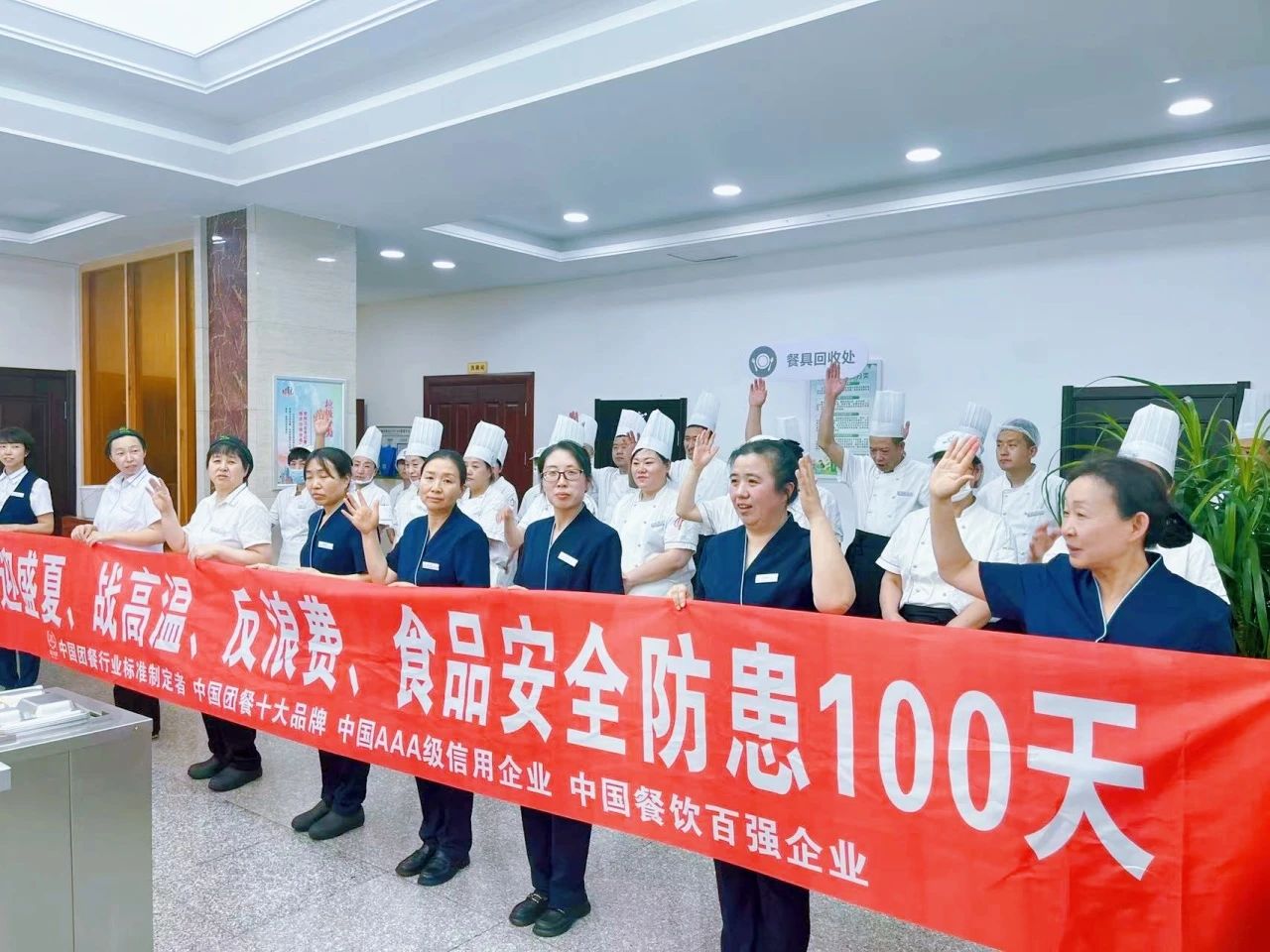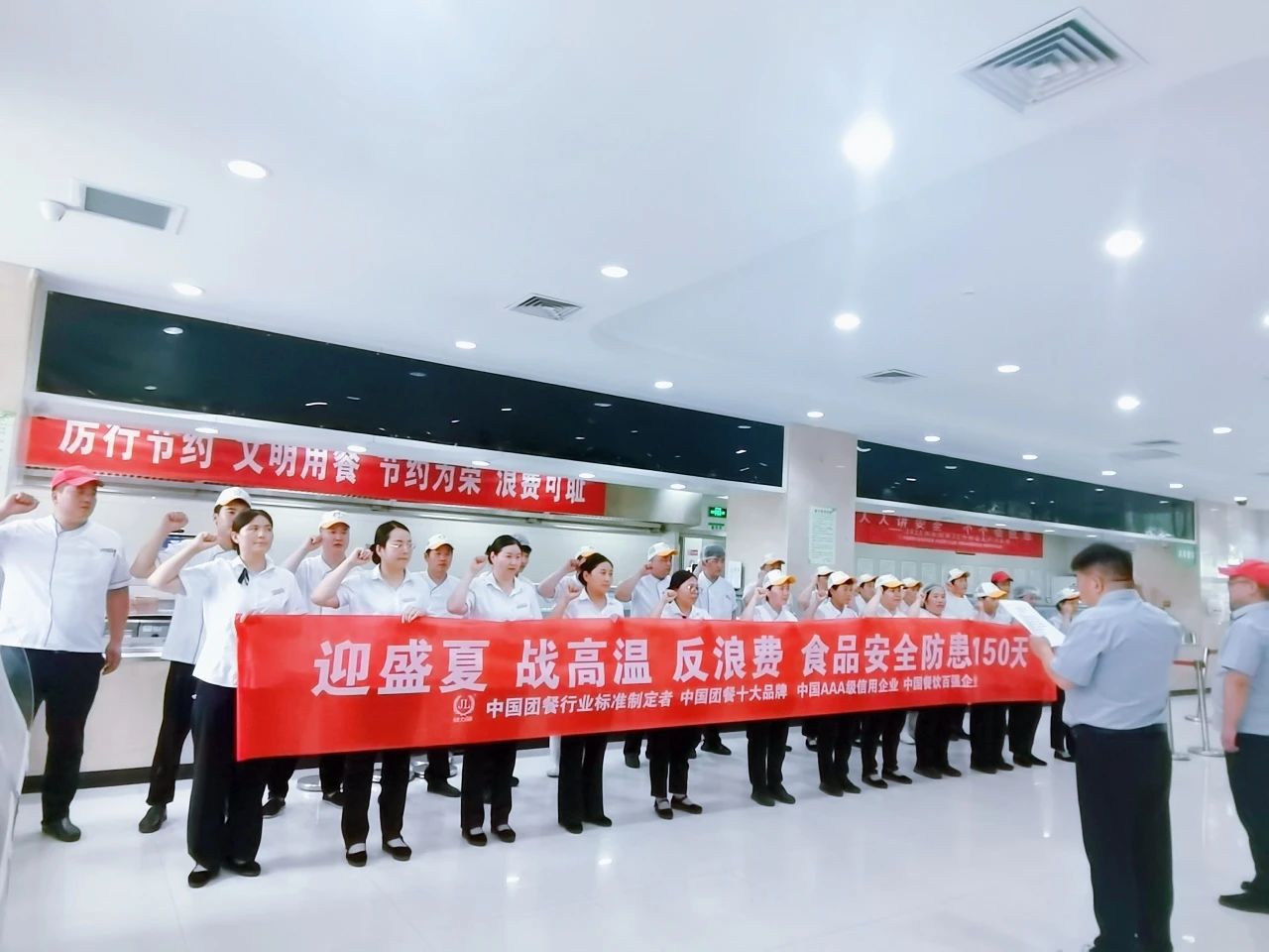 在誓師大會(huì)上,客戶分管領(lǐng)導(dǎo)、餐廳經(jīng)理,以及各餐廳員工紛紛在海報(bào)和橫幅上鄭重簽名,這不僅代表著個(gè)人的承諾,更彰顯了餐廳團(tuán)隊(duì)的集體責(zé)任感。