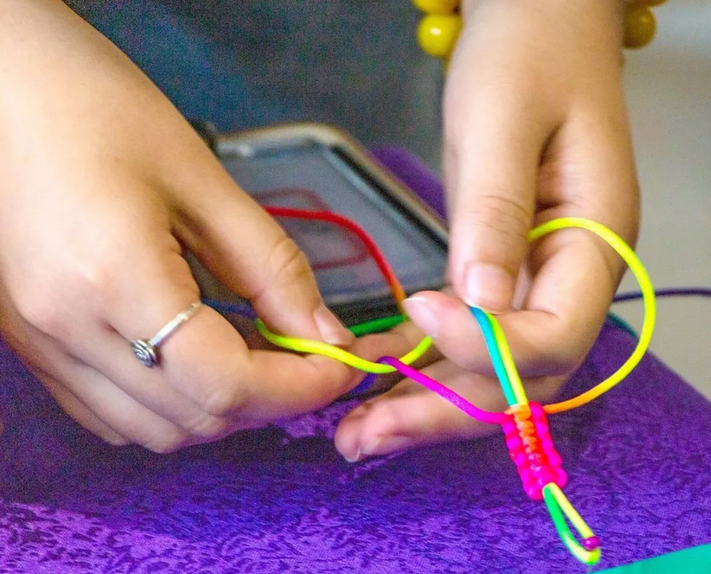 雙手左右翻動,一條條漂釀的五彩繩就誕生了~~